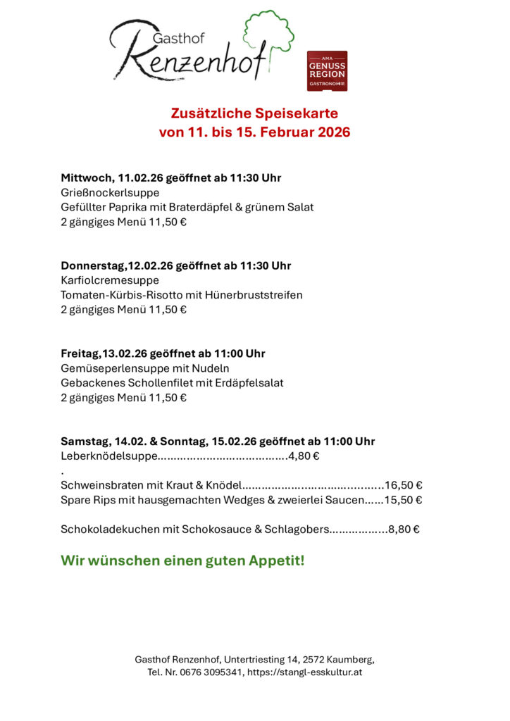 Gasthof Renzenhof, Untertriesting 14, 2572 Kaumberg